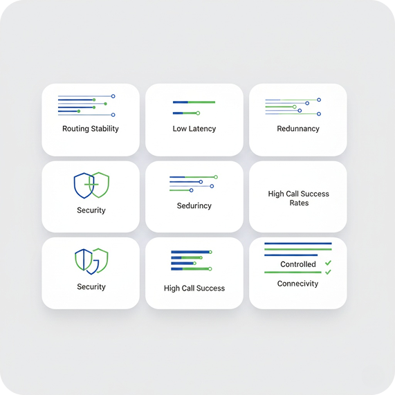 Purpose-Built for Real-Time Communications. Our infrastructure is engineered specifically for SIP signaling and RTP media transport with: